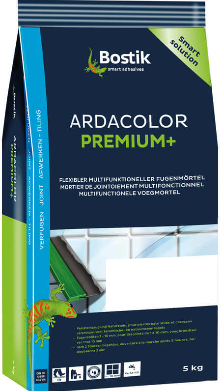 De fijne structuur zorgt voor een strak oppervlak met een heldere, duurzame kleur. Ardacolor Premium+ is geschikt voor binnen en buiten, op zowel wanden als vloeren, en is perfect te combineren met vloerverwarming. Daarnaast is het product vorstbestendig, waterdampdoorlatend, onderhoudsvriendelijk en zeer slijtvast. De voegmortel is licht verwerkbaar, snel beloopbaar (al na ca. 2 uur) en voldoet aan de hoogste emissienormen (EMICODE EC1 PLUS).