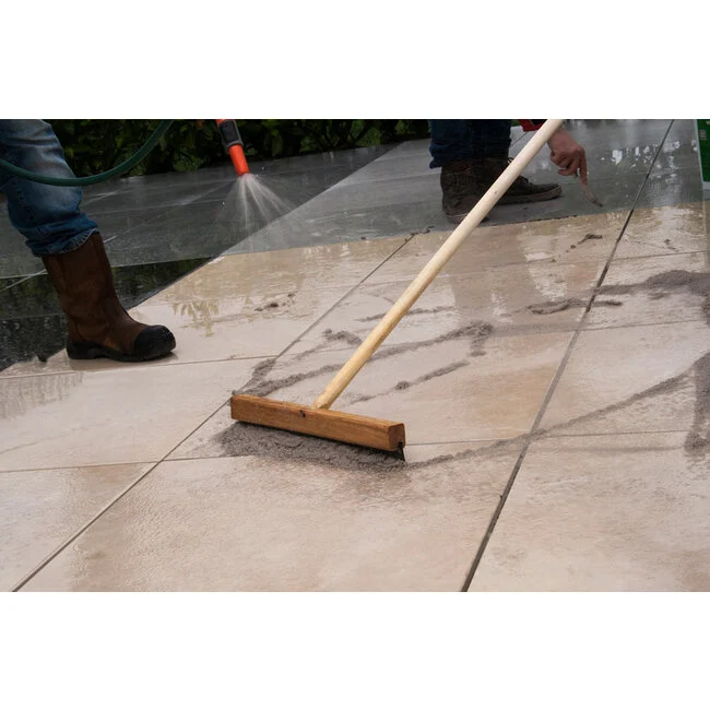 - Reiniging van de voegen hoeft enkel met schoon water en een schrobborstel. Het gebruik van hoge druk reinigers wordt afgeraden.