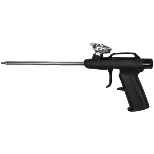 Standaard PU-pistool voor het nauwkeurig verwerken van polyurethaanschuim. Dit lichtgewicht basispistool heeft een kunststof behuizing en een ergonomisch handvat voor comfortabel gebruik. De metalen, zwart gepoedercoate hendel zorgt voor extra stevigheid.