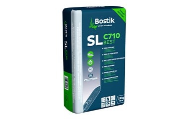 Bostik SL C710 Best is een hoogwaardig universeel egaliseermiddel, in het bijzonder aanbevolen voor lokalen met intens verkeer zoals industriële keukens, luchthavengebouw, gangen in ziekenhuizen, commerciële ruimtes, distributieruimtes, grootwarenhuizen, etc. Mogelijke vloerbedekkingen: pvc, vasttapijt, linoleum, rubber, parket (laagdikte ≥ 3 mm) en tegels. Geschikt voor binnen gebruik.