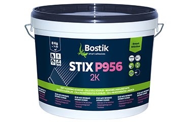 Bostik Stix P956 2K is een oplosmiddelvrije universele 2-componenten polyurethaanlijm voor het verlijmen van alle niet afgewerkte parketsoorten, alle houtextracten, alle formaten, alle geverniste parketsoorten (massief of 2/3-lagig)- alle formaten, strokenparket, massief parket tand en groef, lamellen parket (2/3-lagig), mozaïek, lamel op kant, kopshout, plankenvloer, laminaatvloeren, houtvezelplaten, OSB (geschuurd), spaanplaat en multiplex.