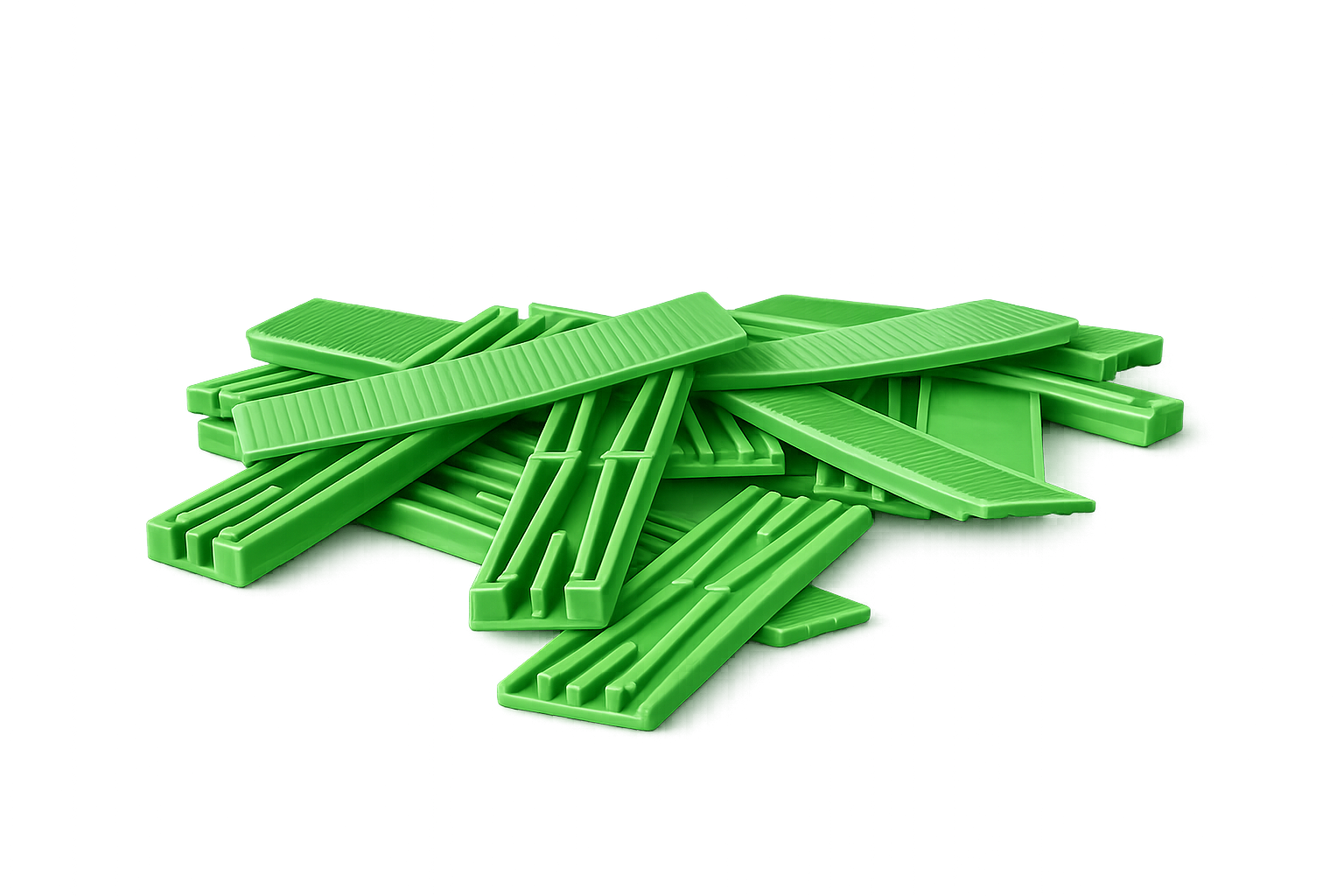 - Steun- en stelblokjes voor het stellen van glas. Het blokje voorkomt dat de ruit met de sponning in aanraking komt.