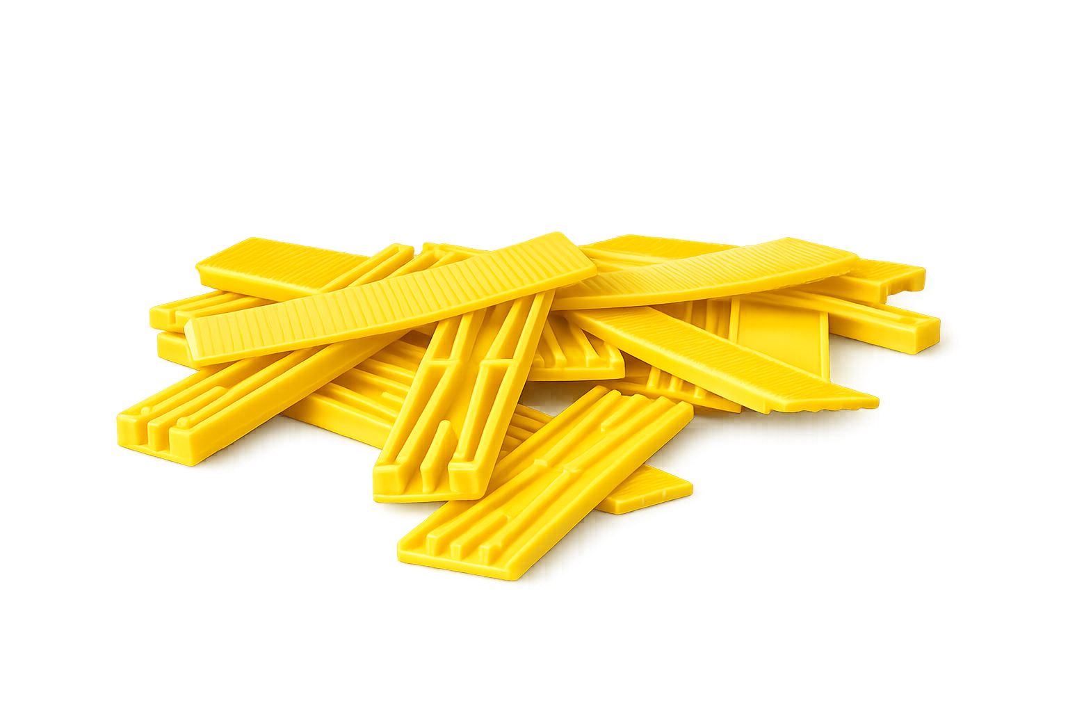 - Steun- en stelblokjes voor het stellen van glas. Het blokje voorkomt dat de ruit met de sponning in aanraking komt.