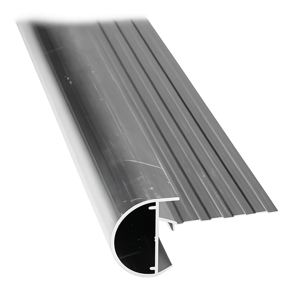Aluminium kraal trim. Dit is een fraaie daktrim die veel wordt toegepast om een mooie, luxe afwerking van het dak te krijgen. De daktrim wordt op de EPDM bevestigd, tussen de daktrim en de EPDM een ril EPDM kit (1 koker is ca. 6 meter daktrim) leggen en met 8 daktrim schroeven per lengte bevestigen. Per lengte daktrim wordt 1 koppelplaatje meegeleverd.