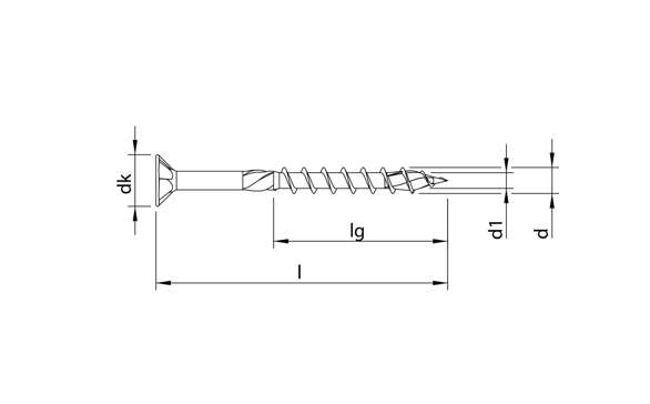 - Platverzonken kop met freesholtes: Uitstekende freeseigenschappen in hout. Geen beschadiging van het oppervlak bij metalen beslag.