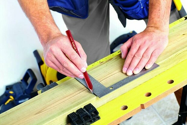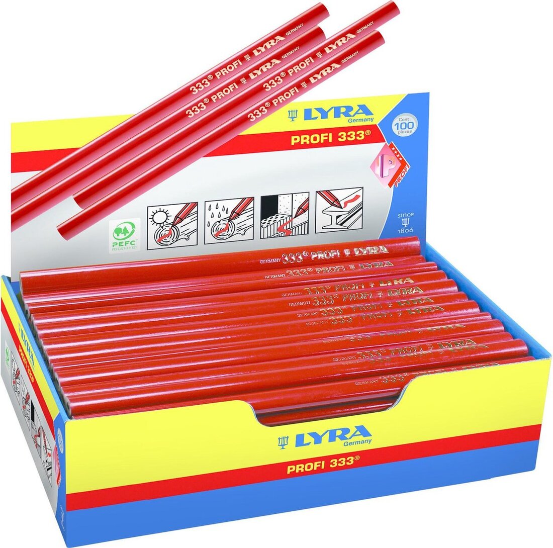 Lyra Timmermanspotlood heeft een afmeting van 240mm of 300mm. Het timmermanspodlood komt in de kleur rood, heeft een ovaal model en is niet geslepen.