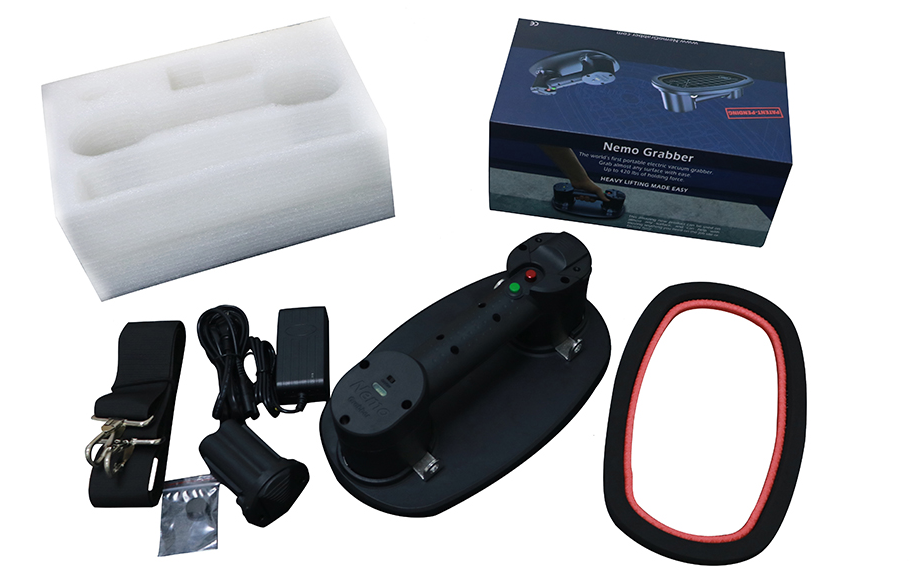 Nemo Grabo Pro; Professionele volledig elektrische hand-vacuümzuiger met een groot draagvermogen tot wel 170kg (afhankelijk van het oppervlak). Geschikt voor vrijwel ieder oppervlak, zelfs met structuur, reliëf of oneffenheden zoals hout, traanplaat en sandwichpanelen. Hecht zelf op een kartonnen doos. Daarnaast is het een perfect hulpmiddel bij het tillen of verplaatsen van grote apparaten, zoals een koelkast of wasmachine. De Grabber weegt slechts 1,5kg.