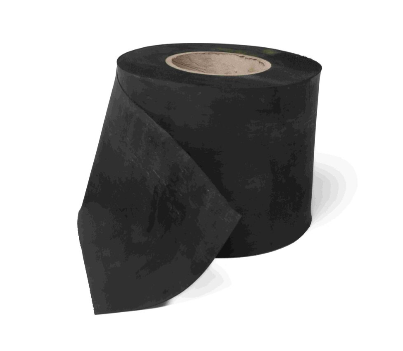 Flexibele en duurzame EPDM‑strook van 1,14 mm dik zwart rubber, geleverd op rol – ideaal voor waterdichte afdichting van dakdetails en reparaties