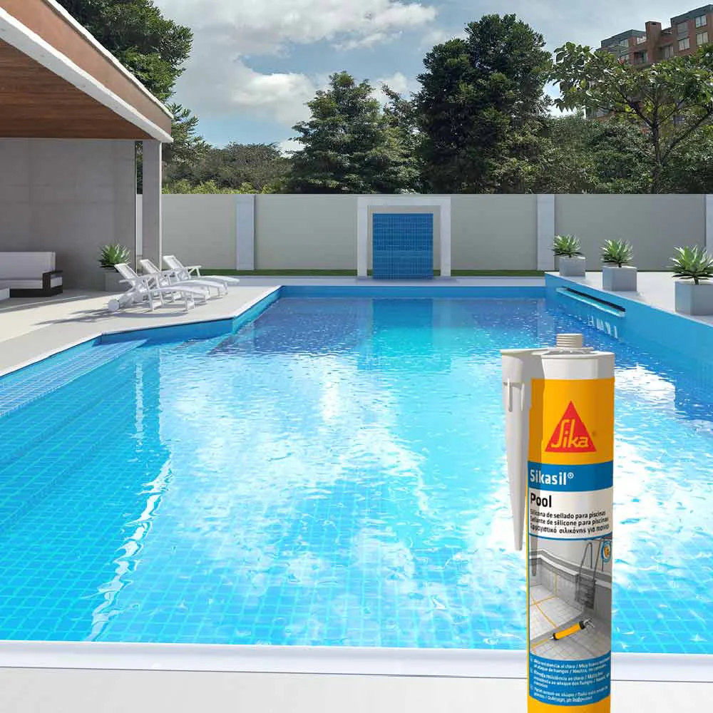 Sika Sikasil Pool is een neutrale uithardende siliconenkit voor zwembaden en permanente natte ruimten. Is ontworpen voor voegen in en rond zwembaden, ruimtes met continue onderwaterbelasting en regelmatig natte ruimtes zoals doucheruimtes in sporthallen, tussen tegels, beton, glas en metalen.
