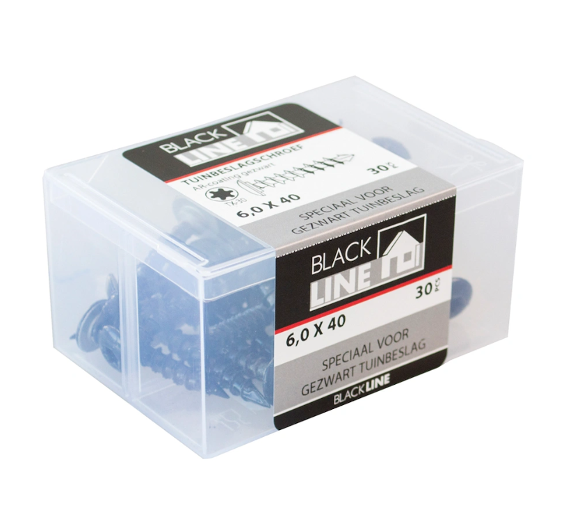 De gezwarte Blackline spaanplaatschroeven zijn van professionele kwaliteit: extra sterk én tevens flexibel. De schroeven hebben een voorborende snijpunt. Dit type boorpunt neemt het restmateriaal mee uit het schroefgat tijdens het inschroeven waardoor het splijten van het hout wordt voorkomen.