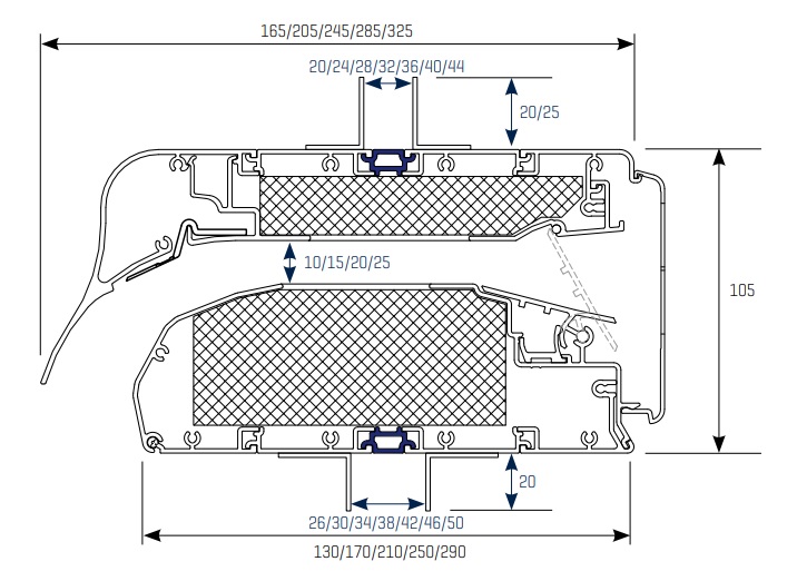 Geen koude-overdracht van buiten naar binnen. De thermische onderbreking kan verschillend gepositioneerd worden, afhankelijk van het model en de installatiewijze.