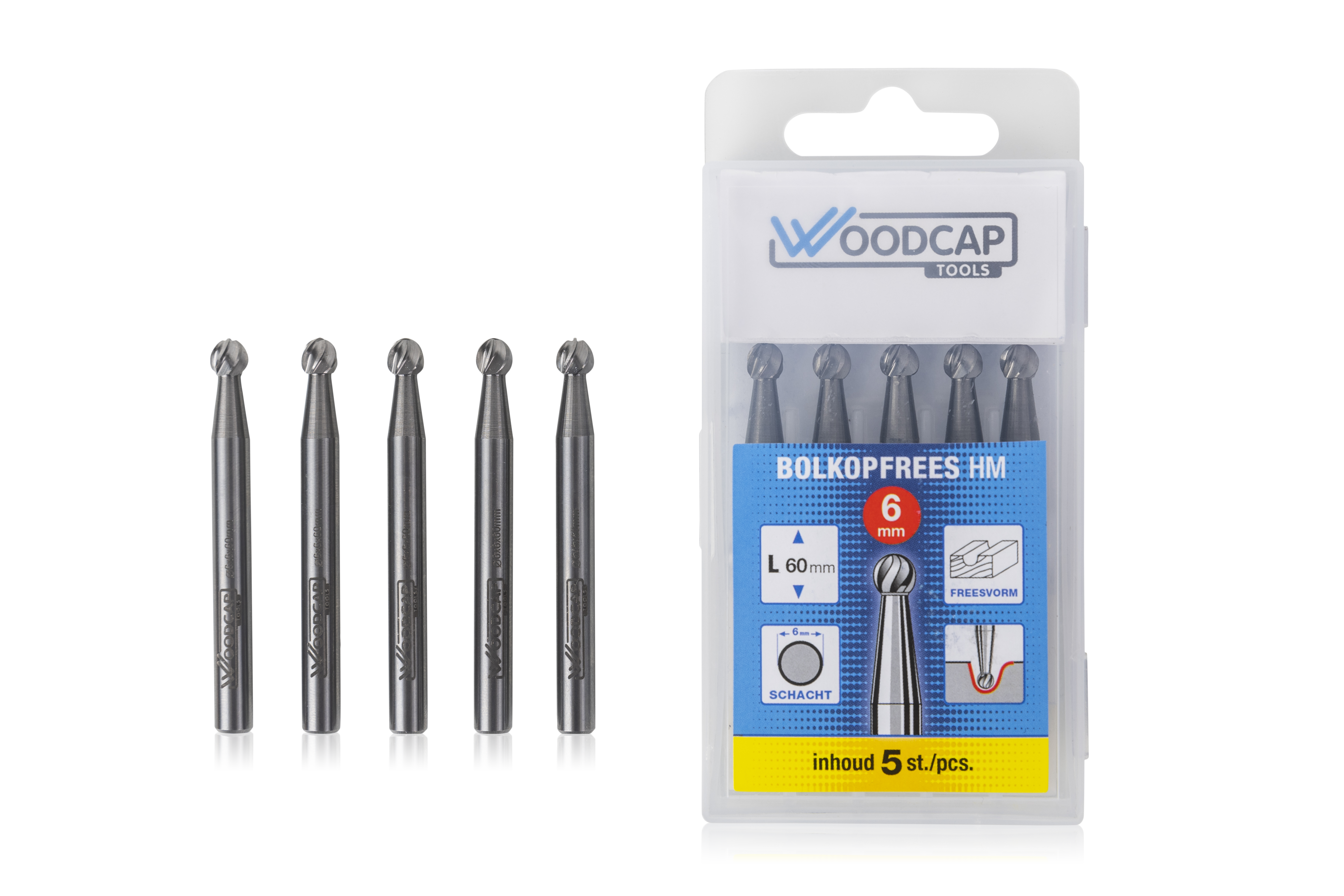 Woodcap Tools HM Bolkopfrees ø 6 mm x 6 x 60 mm